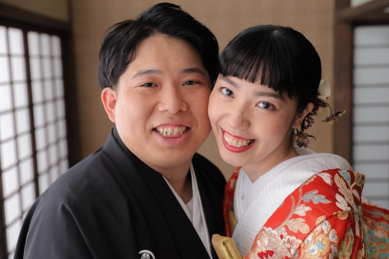 シンプルな背景で、おふたりの幸せな表情を主役にした一枚を