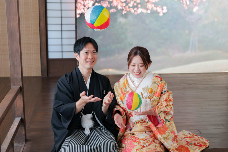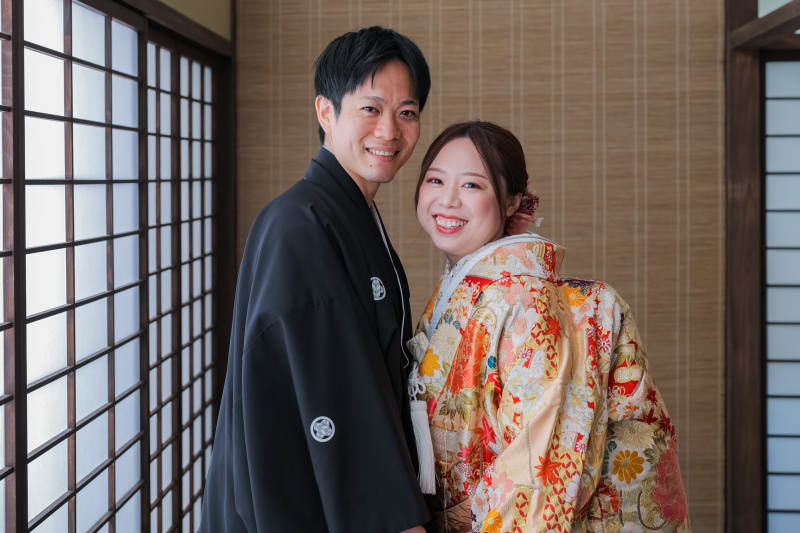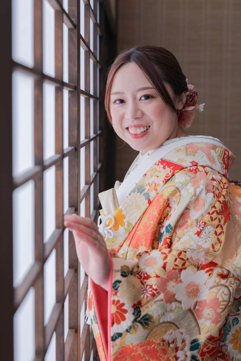 色打掛と、障子がマッチして鮮やかで、柔らかい雰囲気の写真になりました。