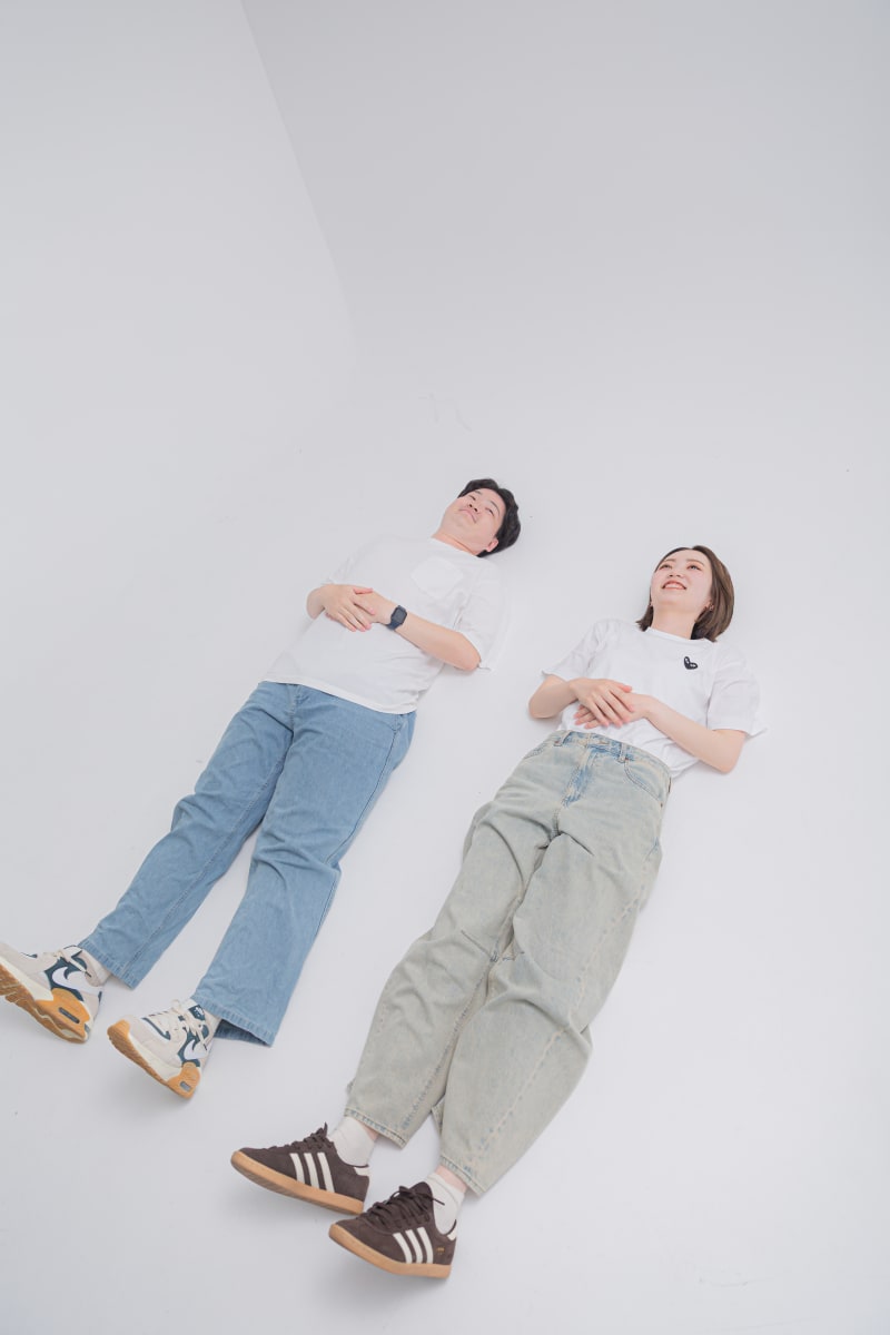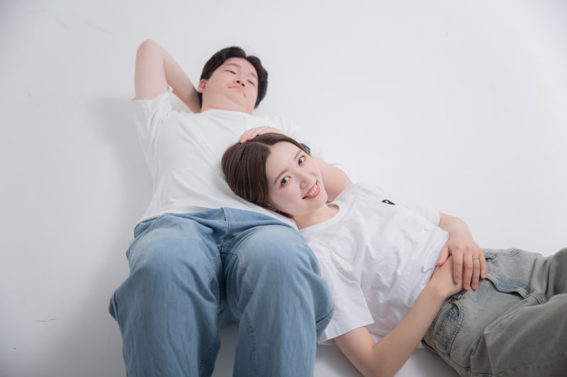 床に寝そべってリラックスしたポーズで撮影もかわいいですね!