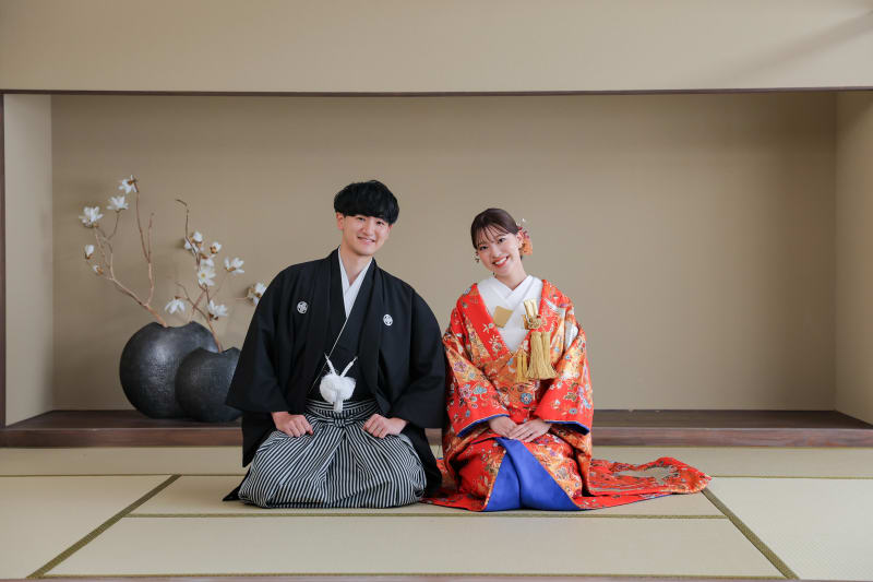 正座の写真も年賀状や挙式のウェルカムボードなどに人気の写真になります。