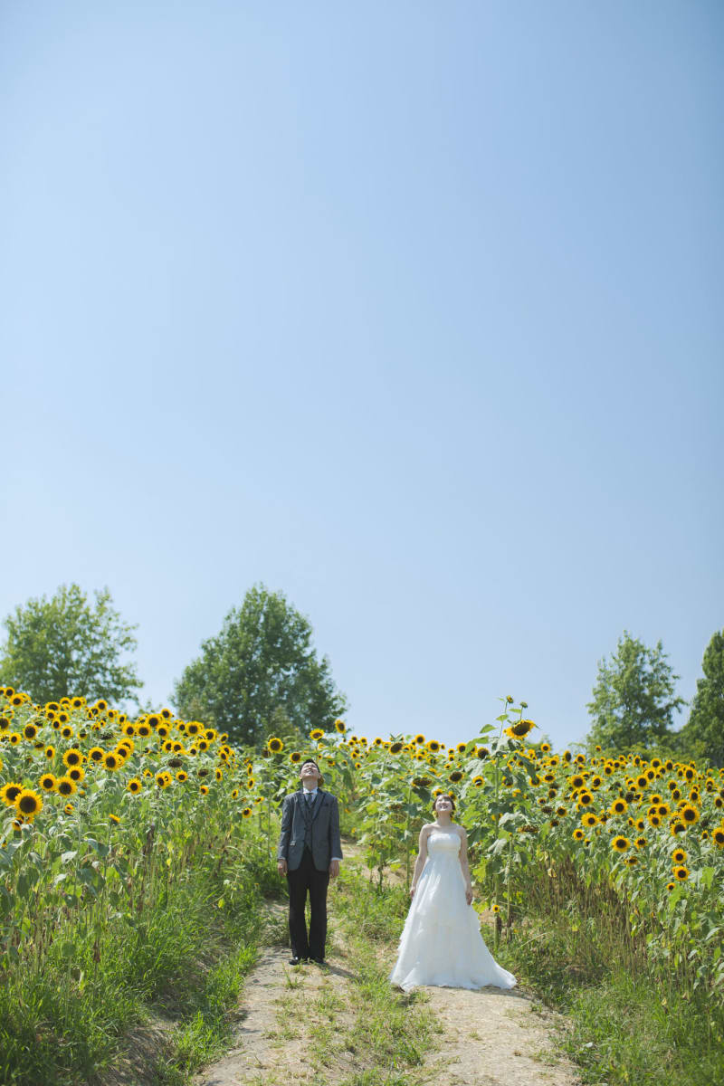 シンプルな背景で、おふたりの幸せな表情を主役にした一枚を