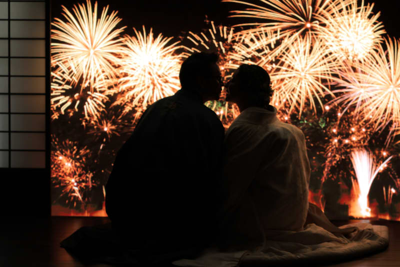 シンプルな背景で、おふたりの幸せな表情を主役にした一枚を