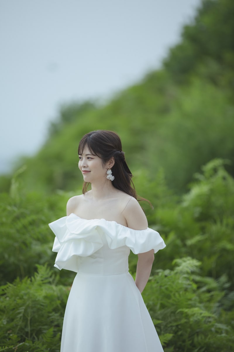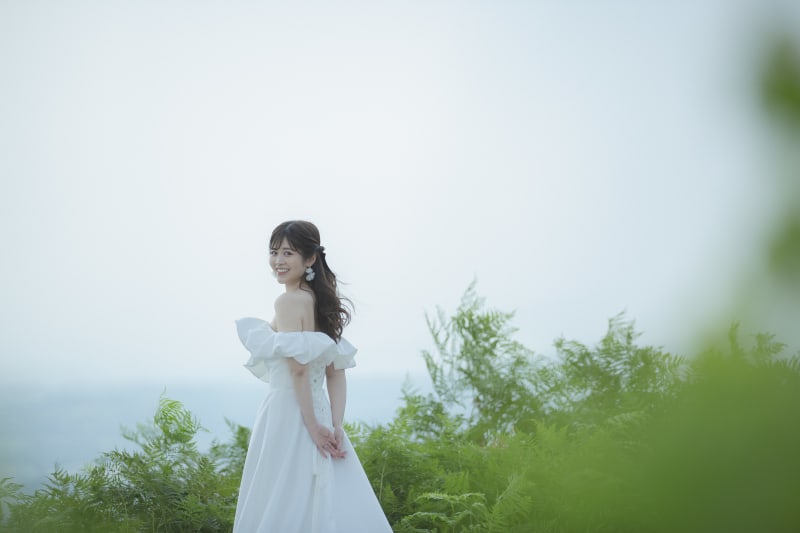 シンプルな背景で、おふたりの幸せな表情を主役にした一枚を