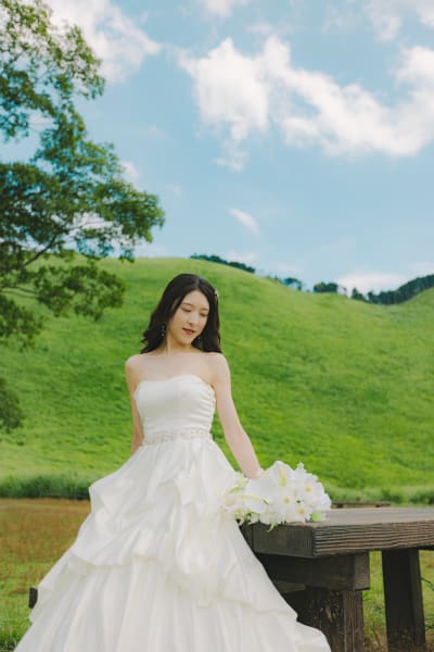 真っ白のドレスとダウンスタイルがとても似合っていてお綺麗です☆