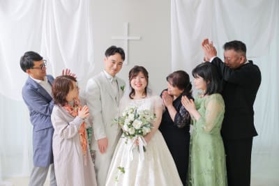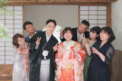 この日はご家族皆さまも撮影に参加され、笑顔いっぱいの撮影となりました。和装も洋装も、それぞれの良さを楽しみながら、ご家族の仲の良さが伝わる素敵なお写真に仕上がっています。