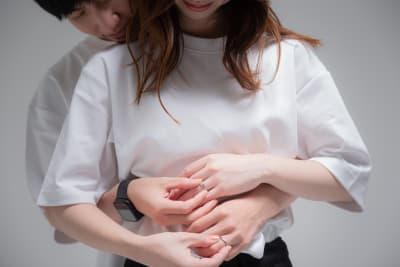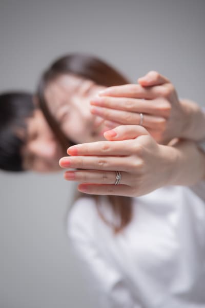 指先をそっと重ねて、お互いに見せ合うようなポーズは、照れながらも嬉しそうなおふたりの表情がとっても印象的でした☺️