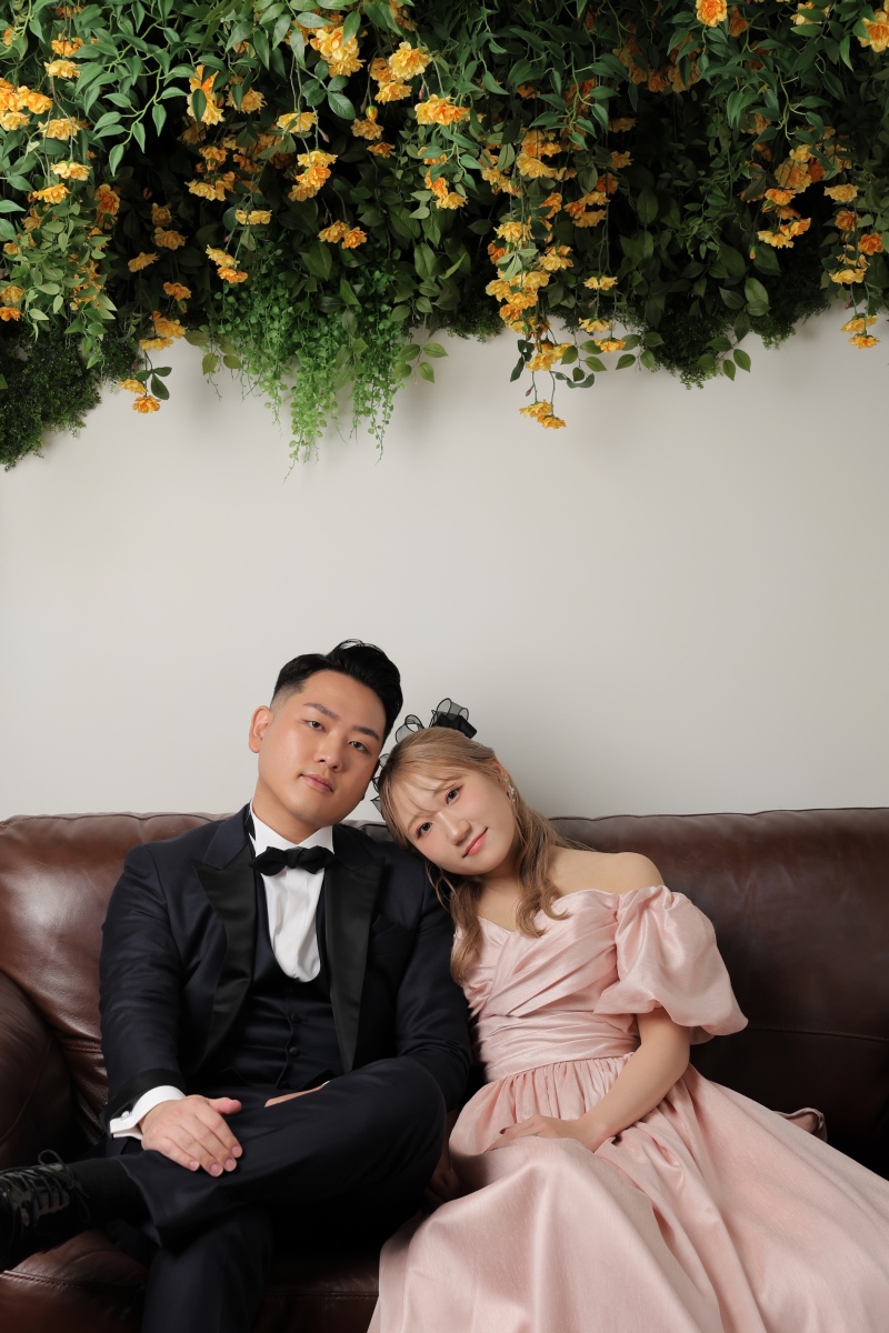 白背景では正式な立ち姿のお写真や、お二人が大好きな推し活アイテムをお持ちくださったので、そちらのアイテムもともに使用してお写真をお撮りさせていただきました♪