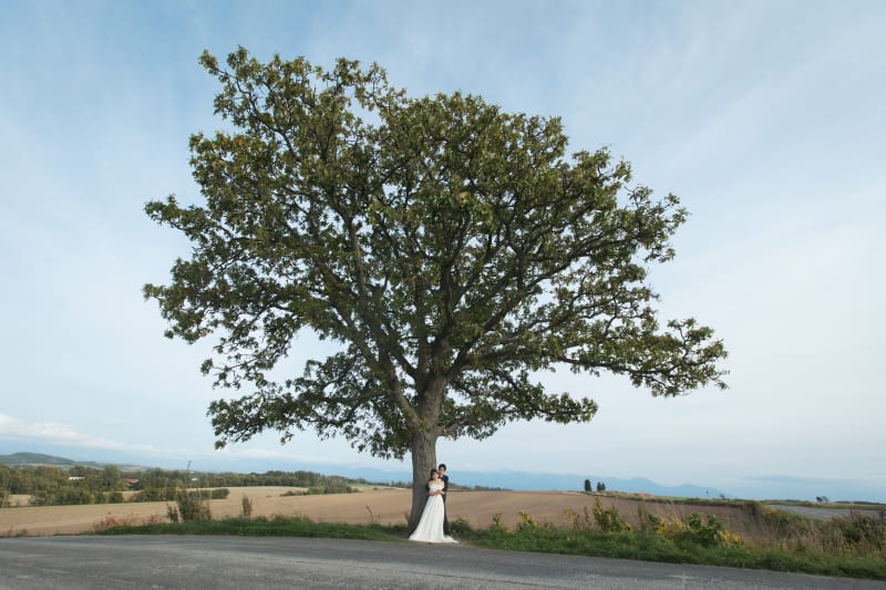 パッチワークの丘で撮影をしました シンボル的な木と一緒に!