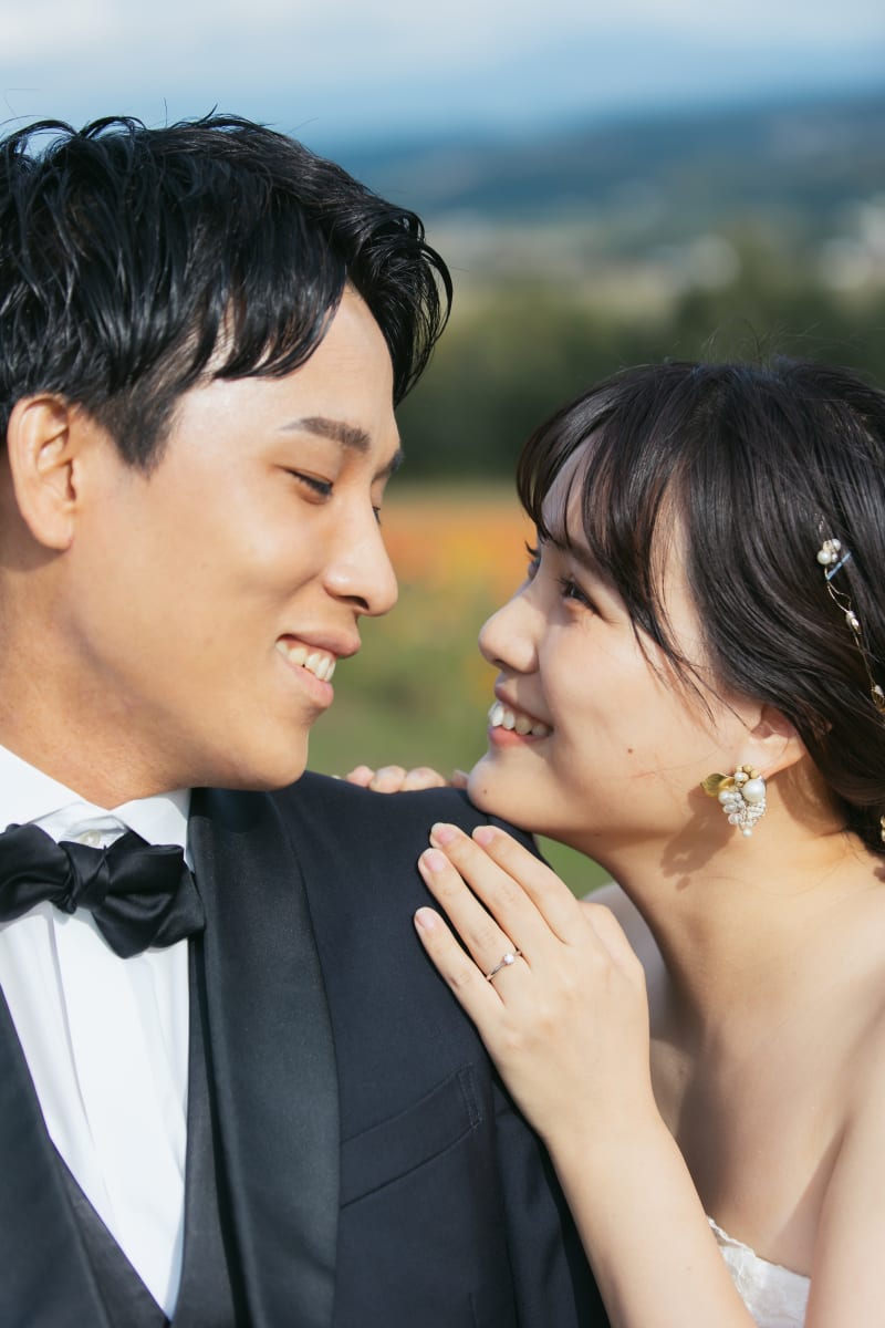 密着して見つめ合ってもらい、肩に手を置いてもらいました 指輪もキラリと光ってます⭐︎