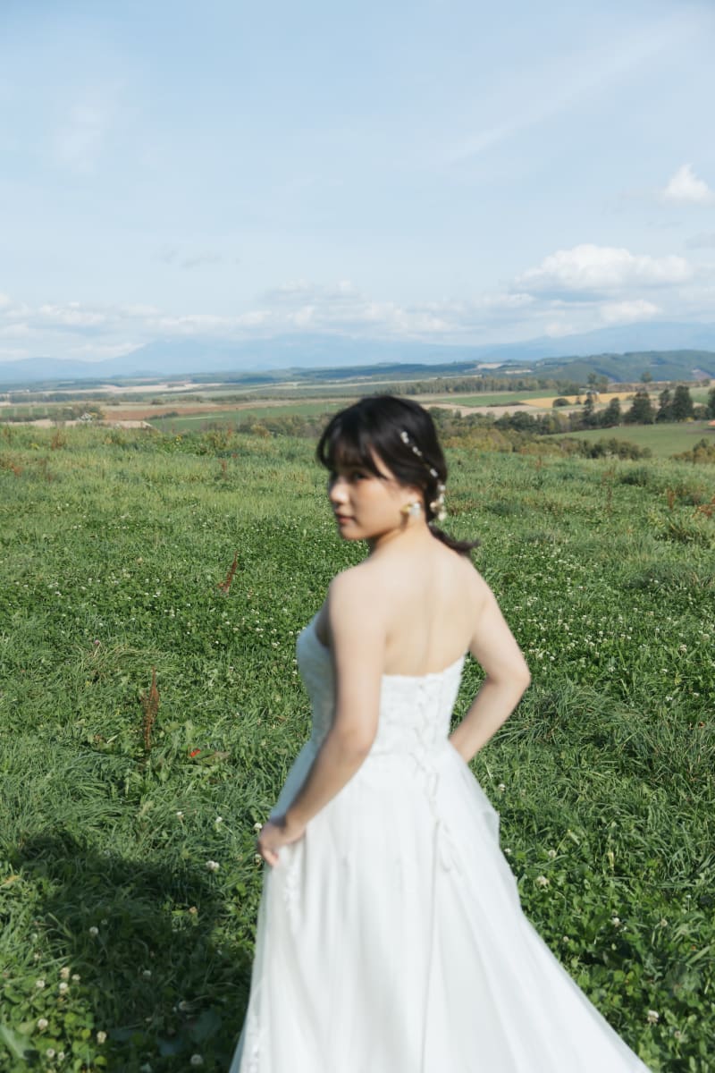 振り返りショットはあえてピントを外しても撮影しました! 自然豊かな美瑛の大地にフォーカスをあてました⭐︎