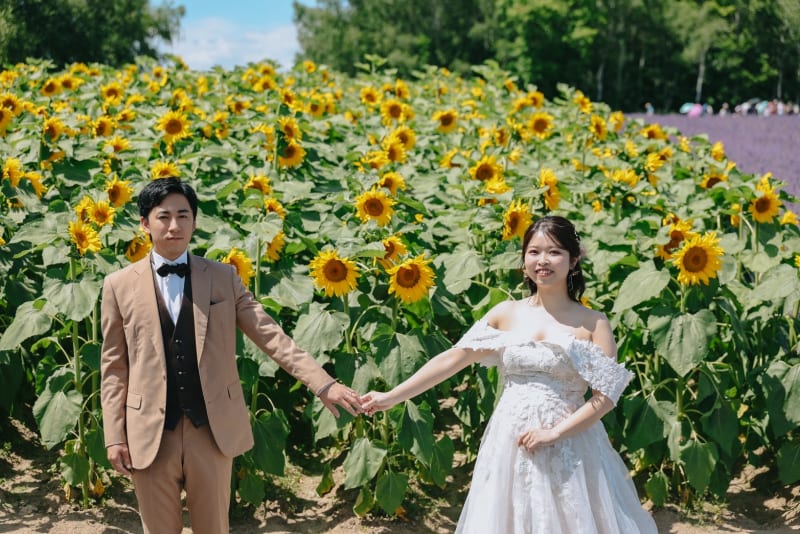 ひまわり畑は、太陽のように明るいおふたりの雰囲気がぴったり!