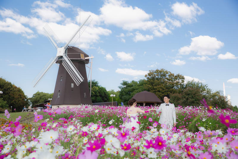 風車が背景に立つと海外に来たかな様な、洋風な雰囲気が漂います。