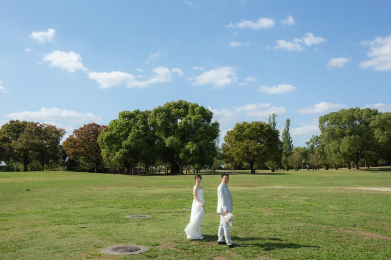 季節のお花畑以外にも広い公園の中で撮影を楽しめます!