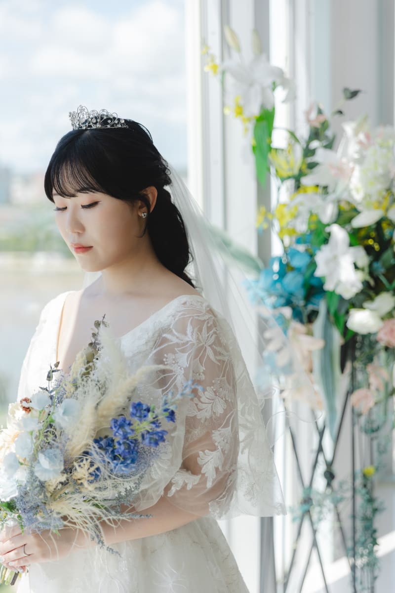 ベールをつけることで花嫁様らしさがより感じられるショットになります☺︎