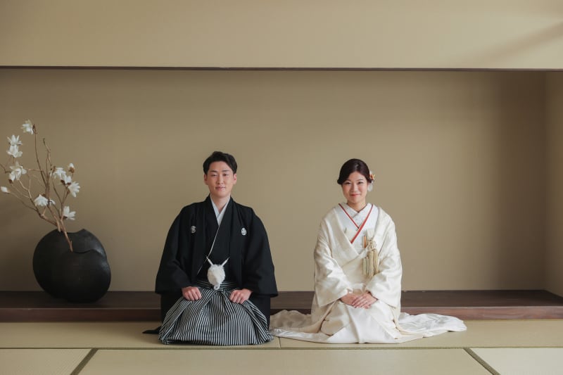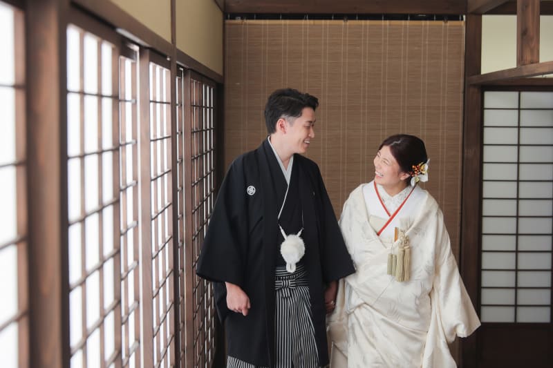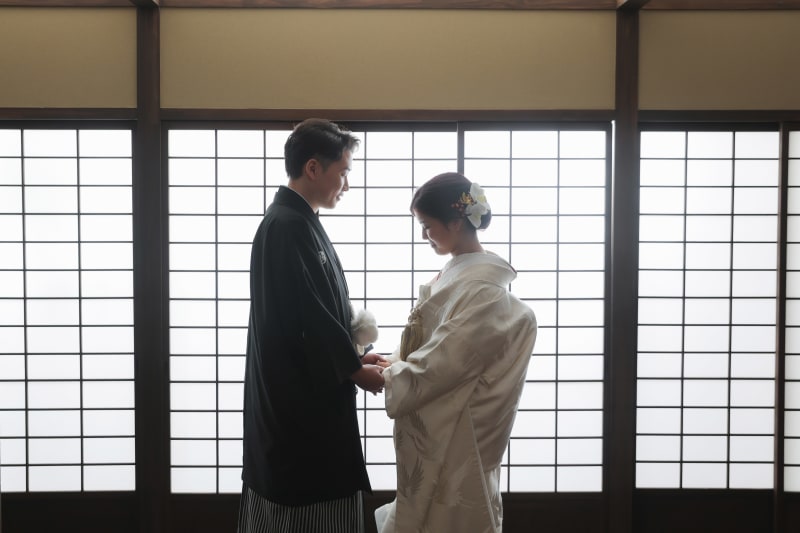 逆光を使用したショット。障子越しのやわらかな光がお二人を包みこみます