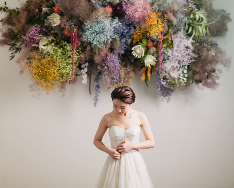 こちらの生花と撮影できるのは今だけなので
