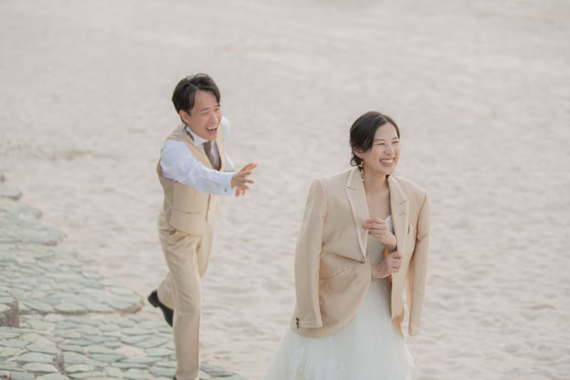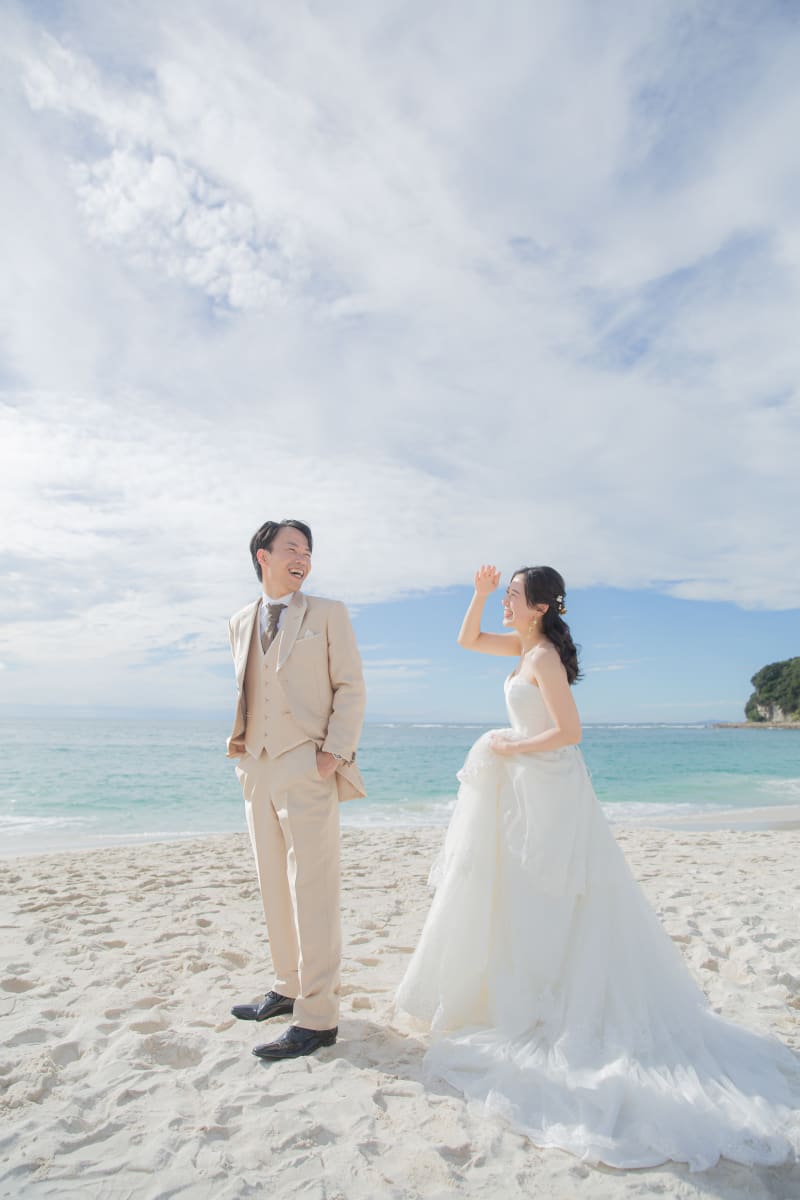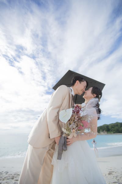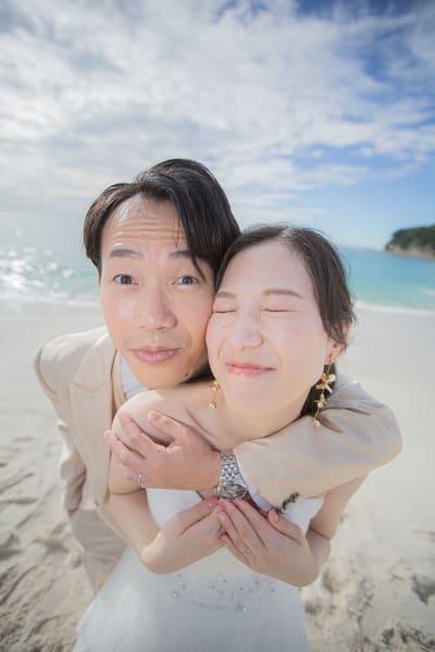 ドアップ写真もとても綺麗に撮れるのが白良浜撮影の魅力。おふたりの仲の良さが伝わる、温かい雰囲気のショットがたくさん生まれました。