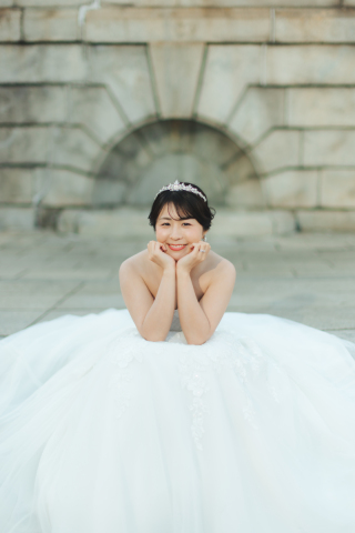 ドレスもふわっと広げて引きで撮影しました☆ 映画のワンシーンみたいですね^^