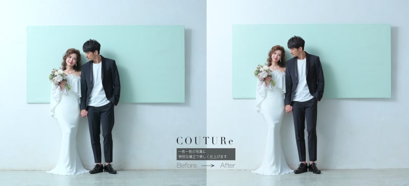 新郎様も足が長くなるよう補正を行い、よりかっこよく仕上がっていますね!!