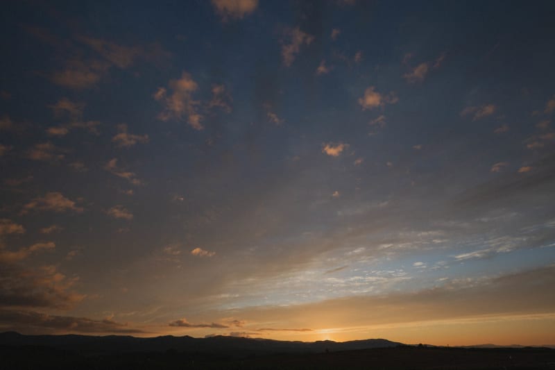 パッチワークの丘から望む夕日。この日に出会えてよかったって思わせてくれる。