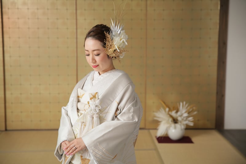 着物にあわせて作ったオリジナルのヘッドアクセサリーも