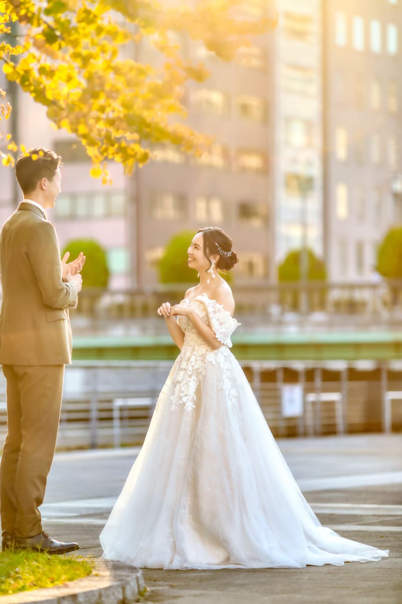 夕方、日の入り時間前での撮影も、柔らかい光に包み込まれて自然にお写真を撮られるのも