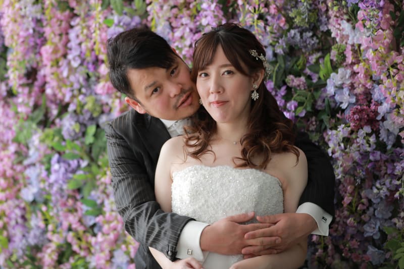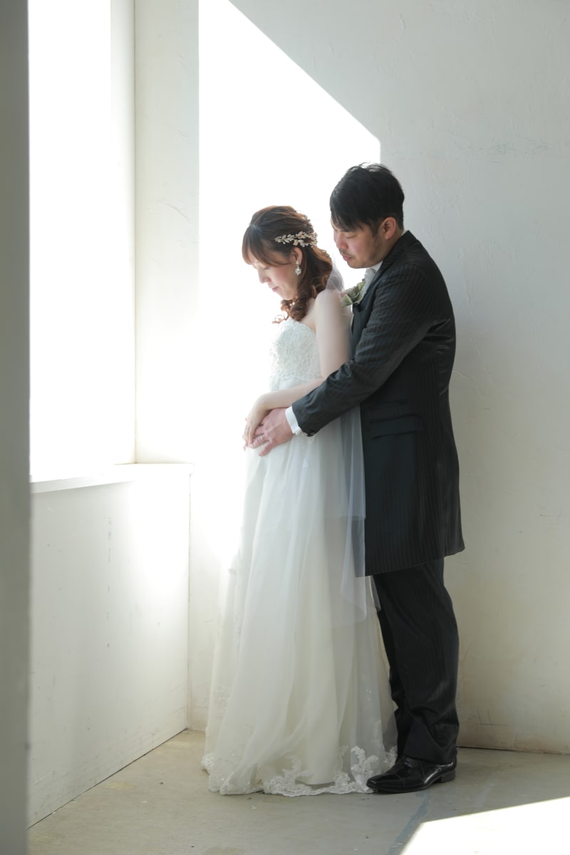 シンプルな背景で、おふたりの幸せな表情を主役にした一枚を