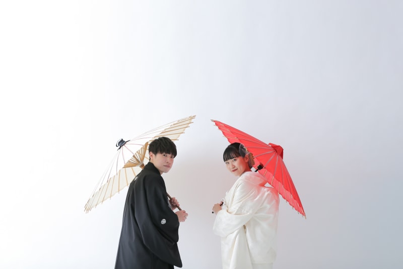 定番の和傘。真っ白な背景にパキッとした赤が映えますね。