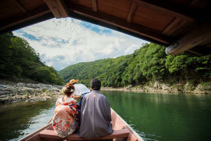 屋形舟に乗船して、桂川と一緒にお写真を撮影することもできます。