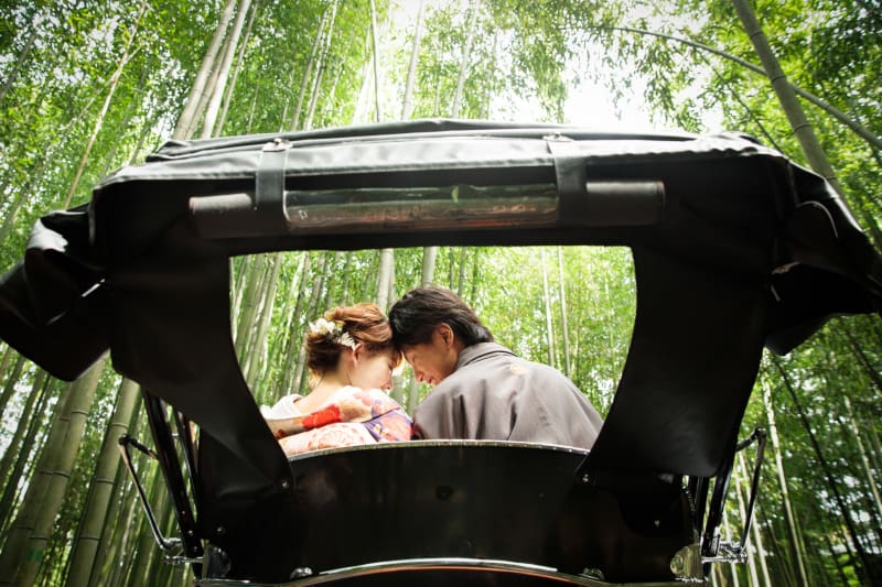 人力車に乗って竹林の中を散歩している風景のお写真も撮影できます。