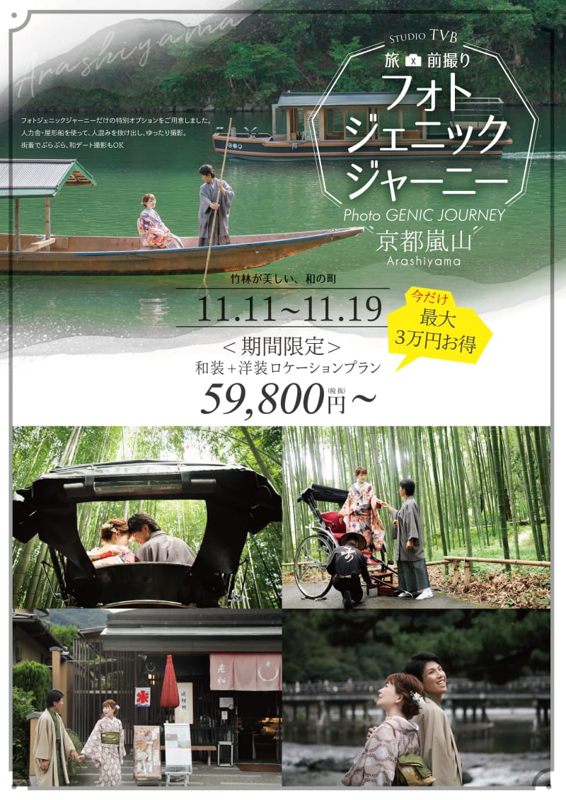 京都の人気観光地「嵐山」でのロケーション撮影プランのご紹介です。