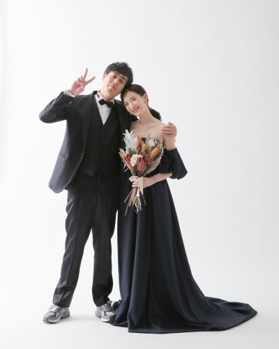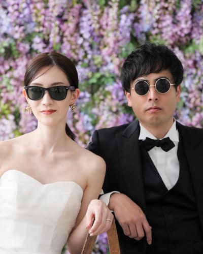 シンプルな背景で、おふたりの幸せな表情を主役にした一枚を
