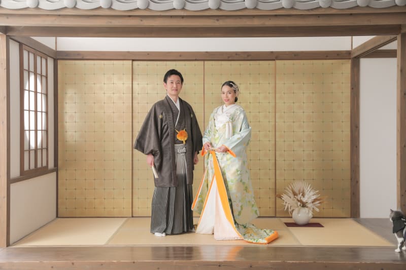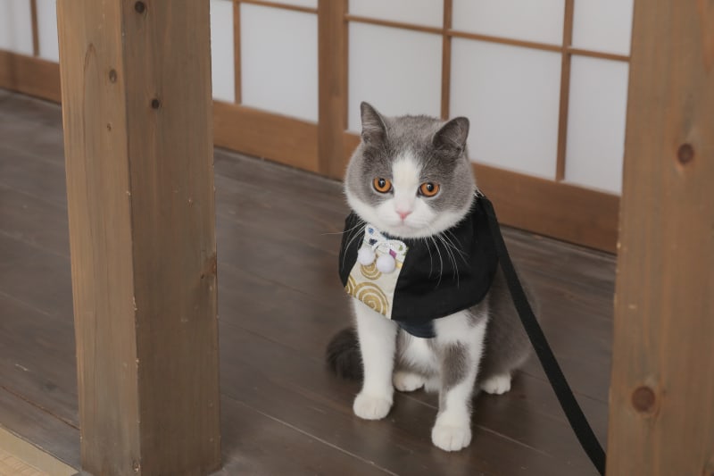 撮影中盤、お二人が縁側に腰掛けたところでいよいよねこさんが登場です。