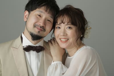 シンプルな背景で、おふたりの幸せな表情を主役にした一枚を