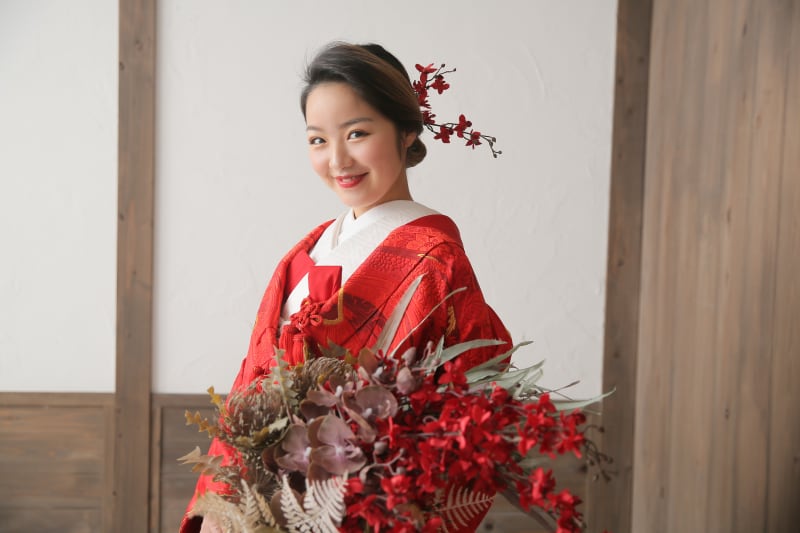 赤無垢に合わせてデザインされた特別なブーケやヘッドパーツもご使用いただけます。