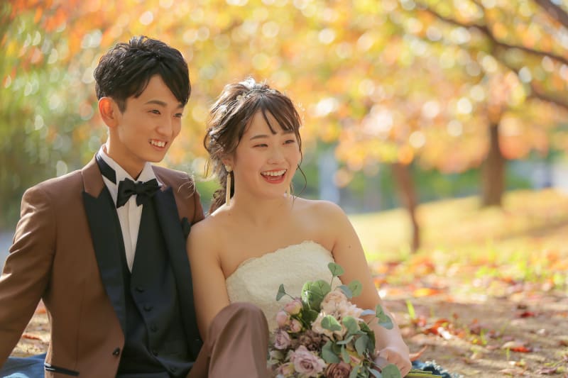 シンプルな背景で、おふたりの幸せな表情を主役にした一枚を