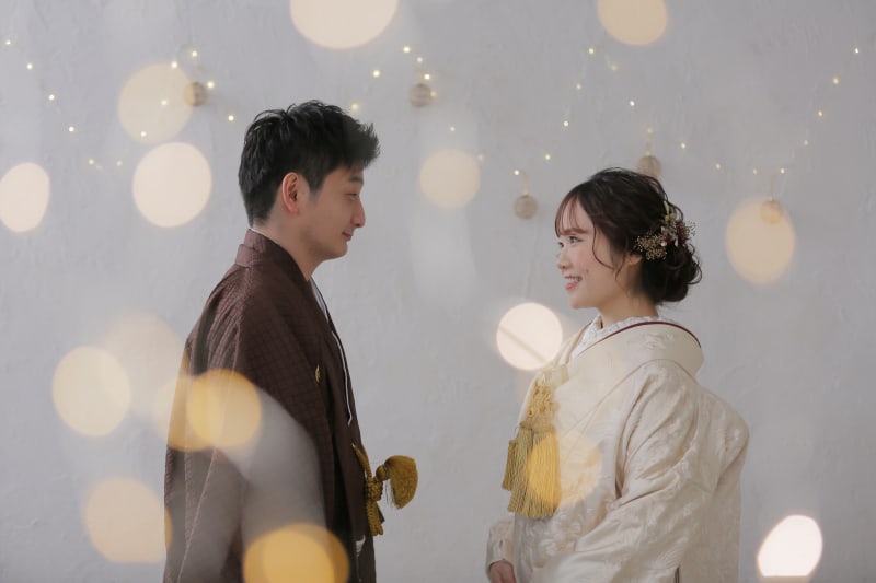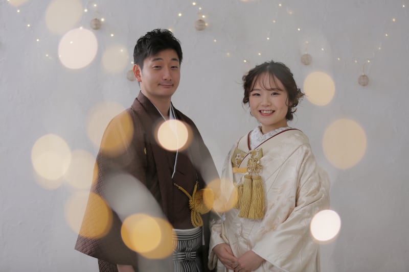 シンプルな背景で、おふたりの幸せな表情を主役にした一枚を