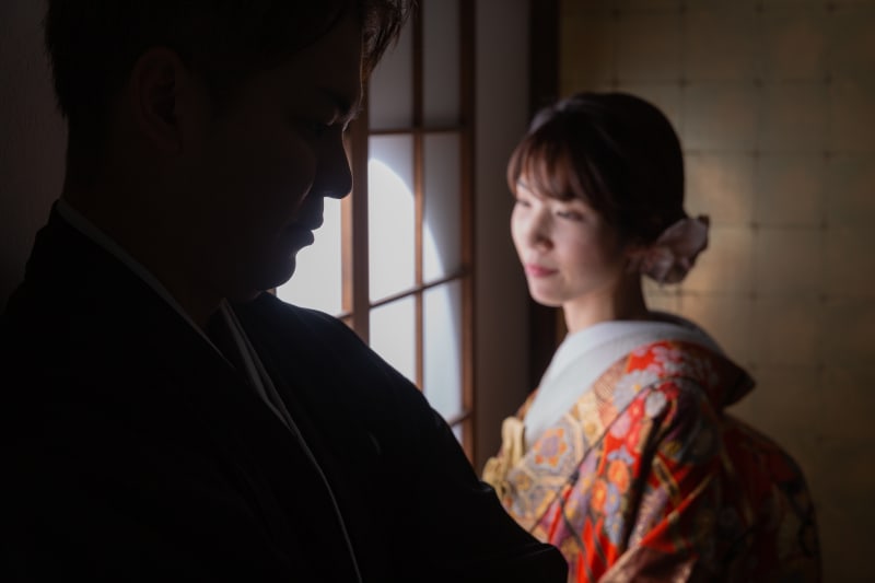 和装にお着替えをして、こちらは「和装屋内庭園」での撮影