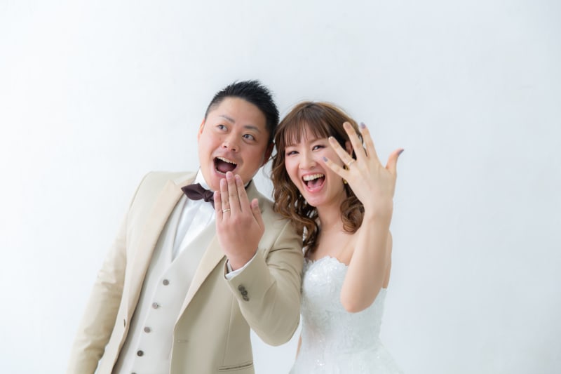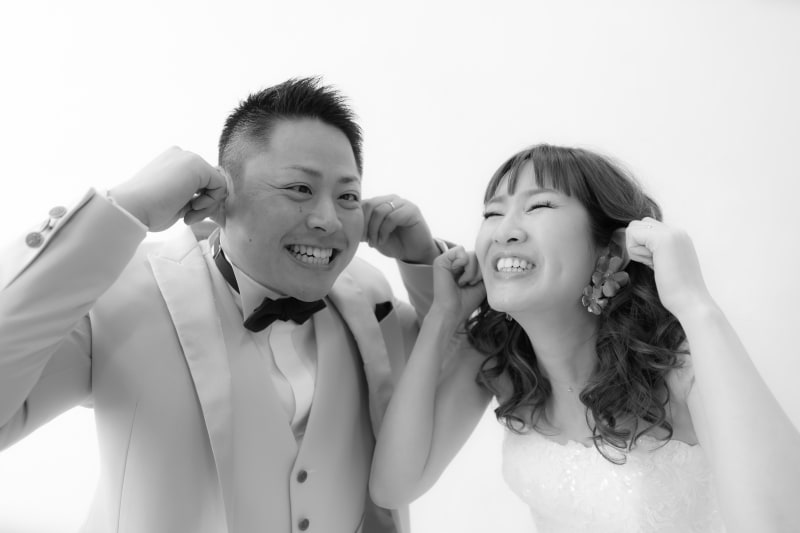 シンプルな背景で、おふたりの幸せな表情を主役にした一枚を