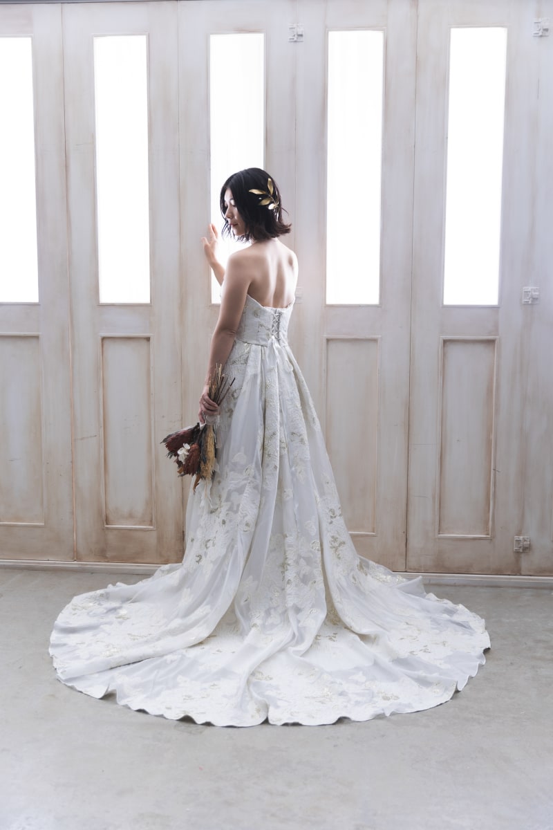 大きめのヘアアクセサリーとドレスの組み合わせもとても合っていてすごく綺麗です◎