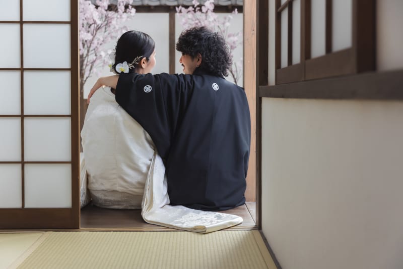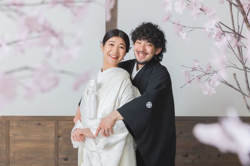 桜と一緒に。 おふたりとも和装のお衣装もとてもお似合いですね!