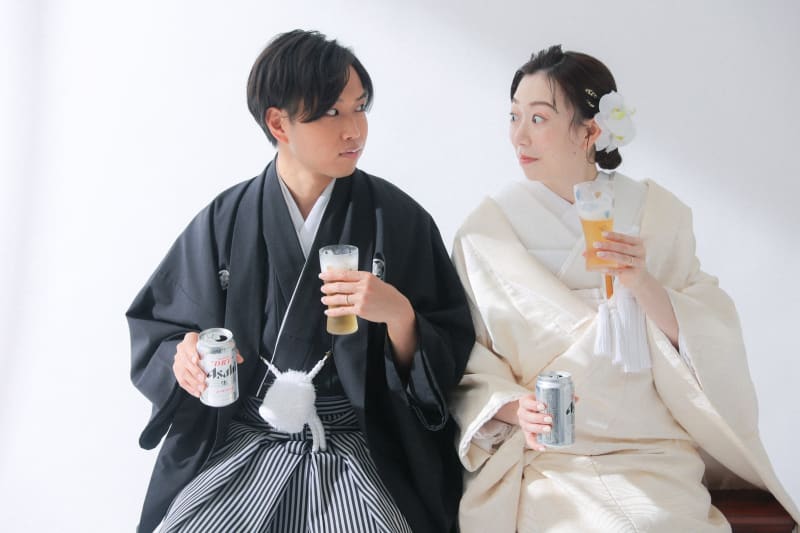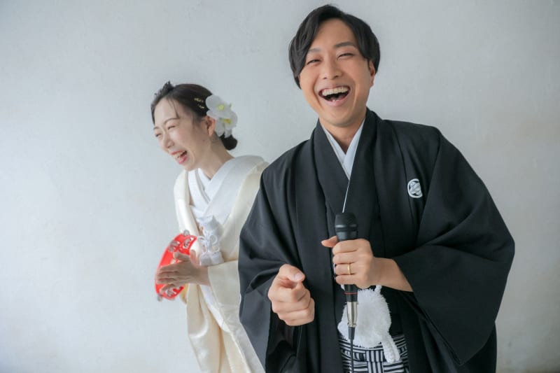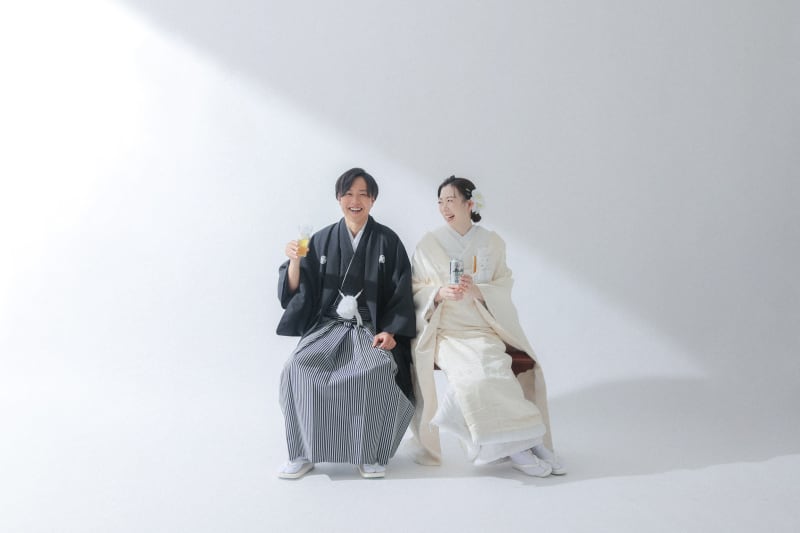 シンプルな背景で、おふたりの幸せな表情を主役にした一枚を