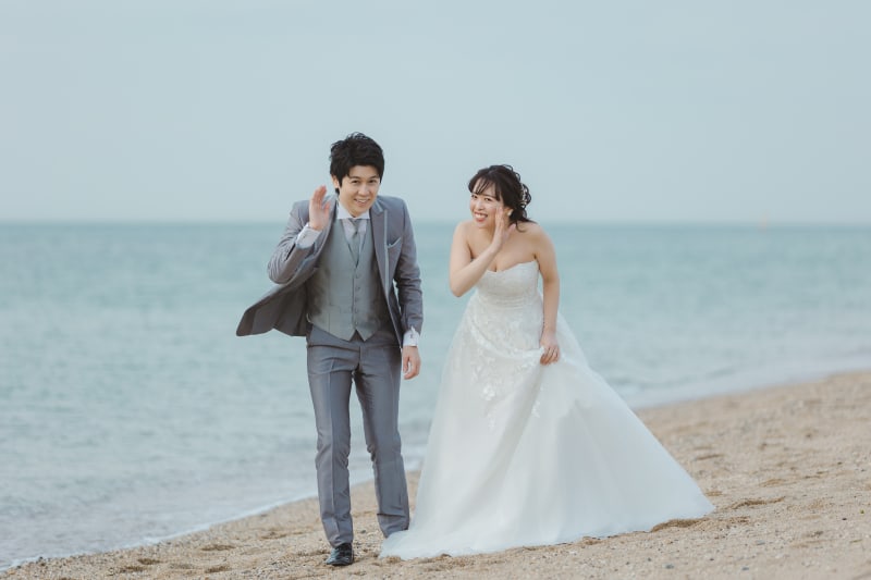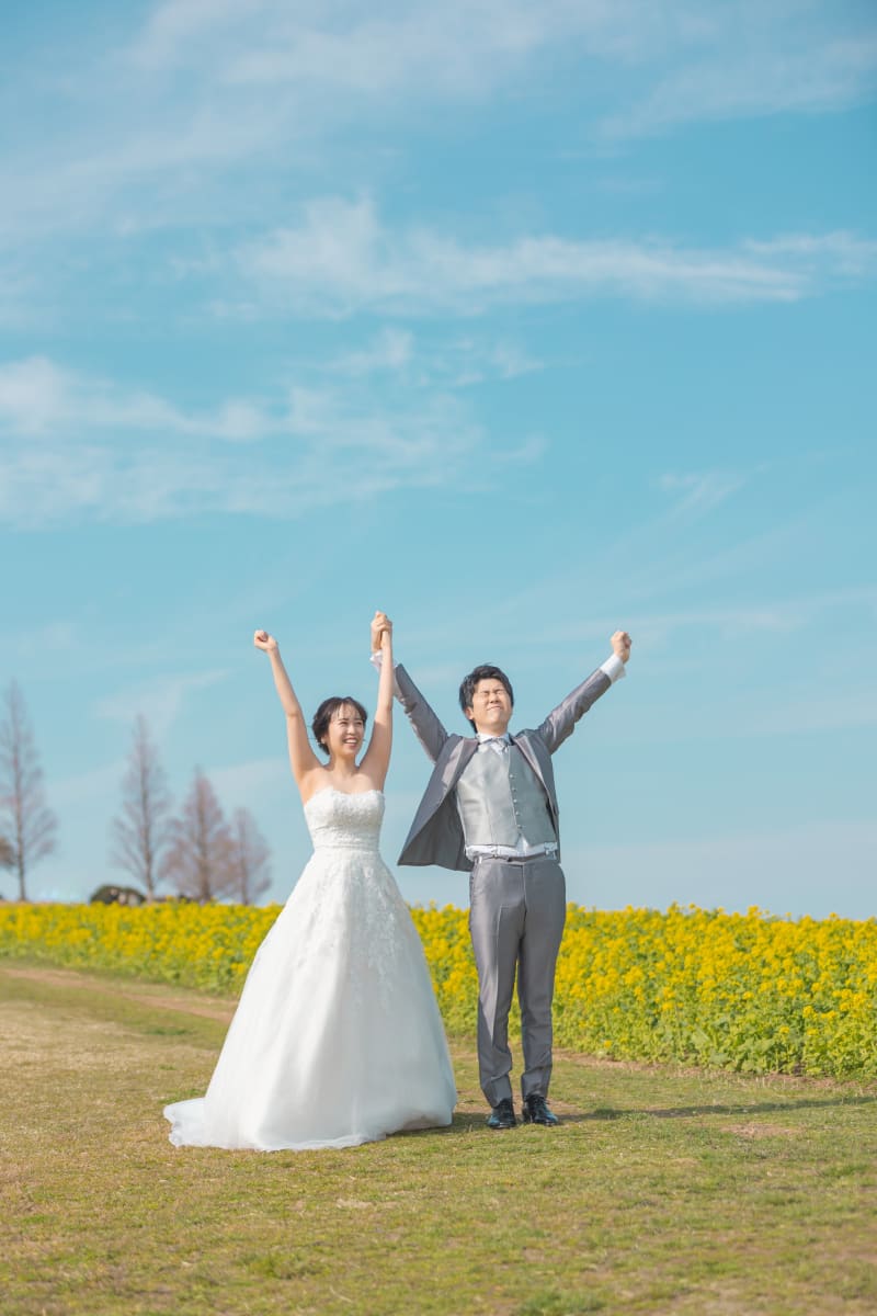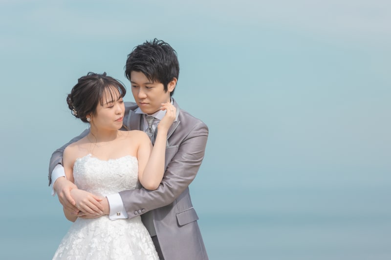 シンプルな背景で、おふたりの幸せな表情を主役にした一枚を