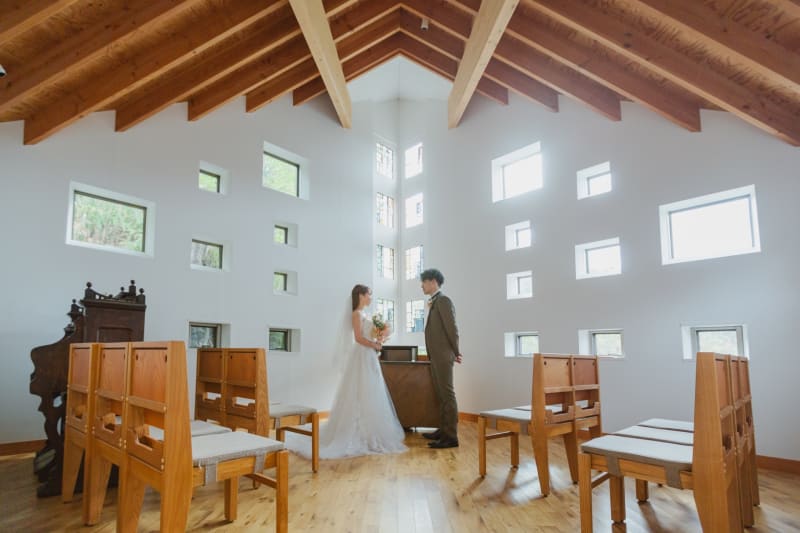 多摩美術大学の学生の協力によって建てられたとってもおしゃれなチャペルです。