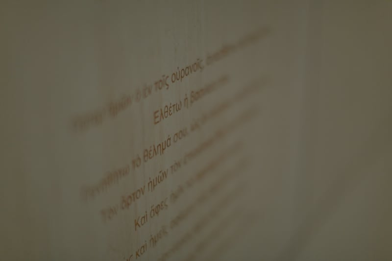 バージンロードの両横の壁には、聖書の言葉が彫られています。