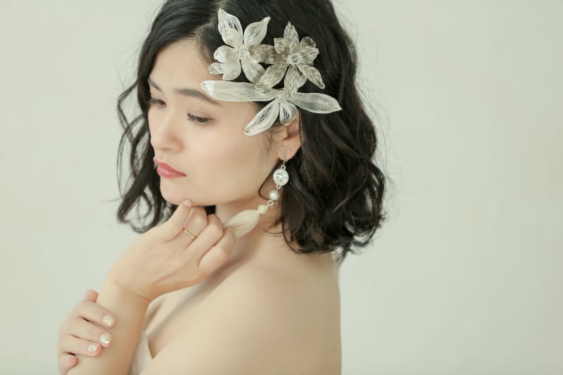 スワロフスキー・クリスタル、シルクといった素材を使用し