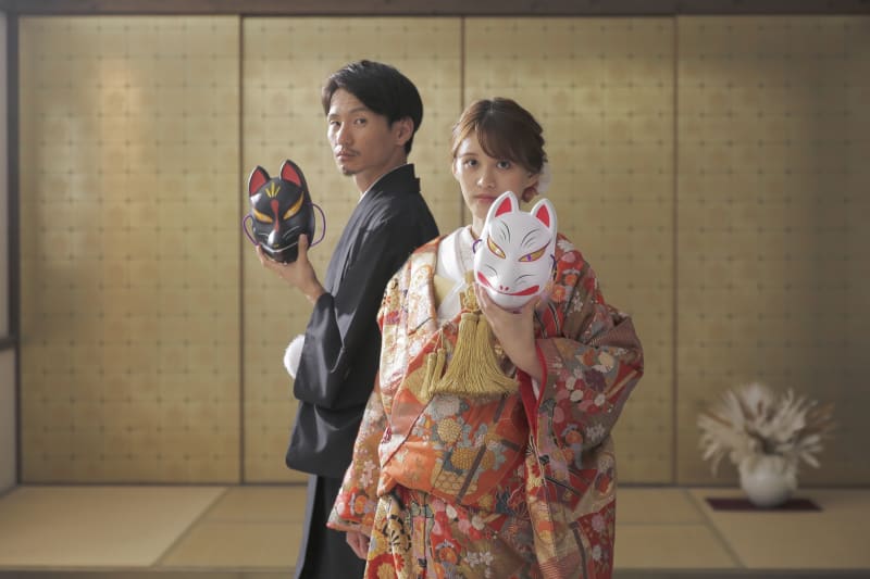 きつねが一番多いですが、「おかめ&ひょっとこ」でおもしろ写真にする方もいらっしゃいましたよ。