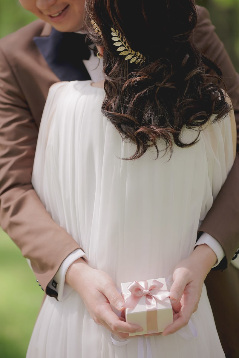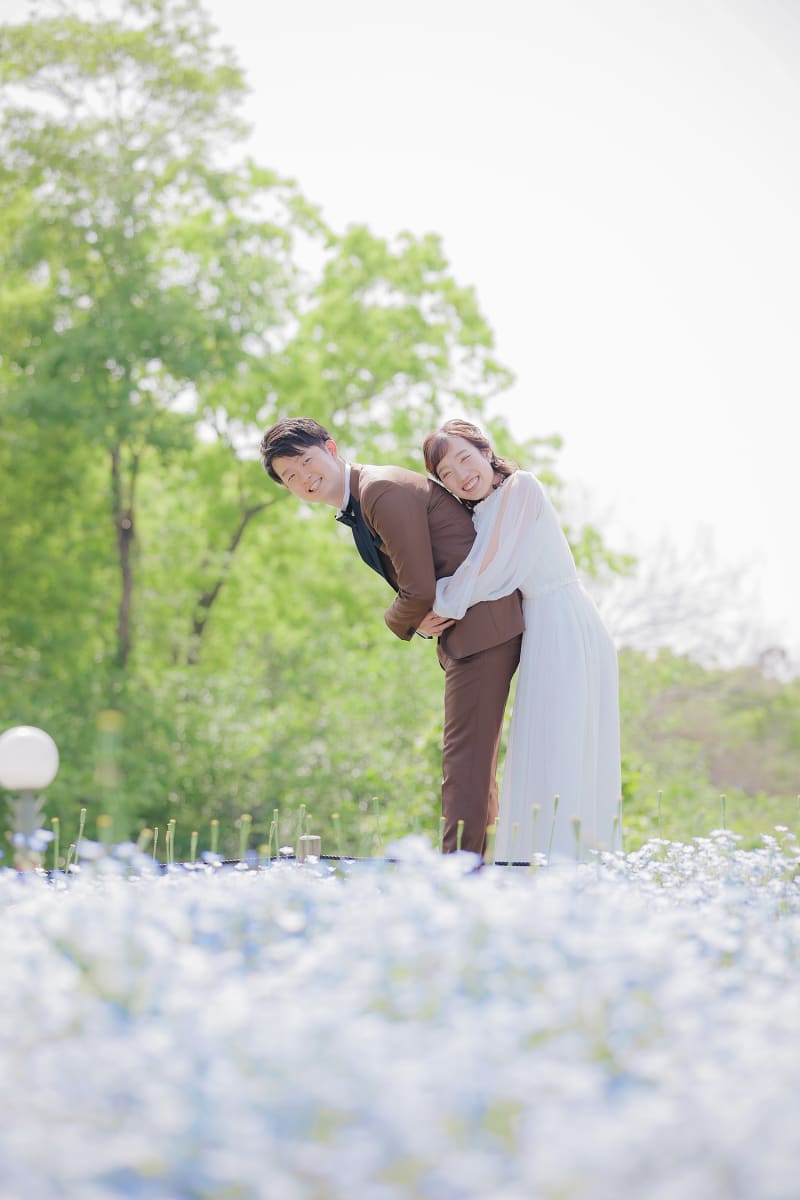シンプルな背景で、おふたりの幸せな表情を主役にした一枚を