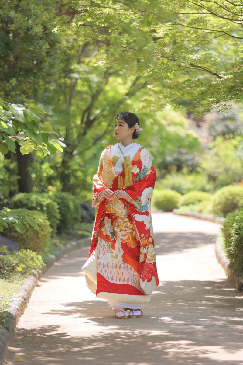 ロケーションは大仙公園の日本庭園で撮影を行いました。