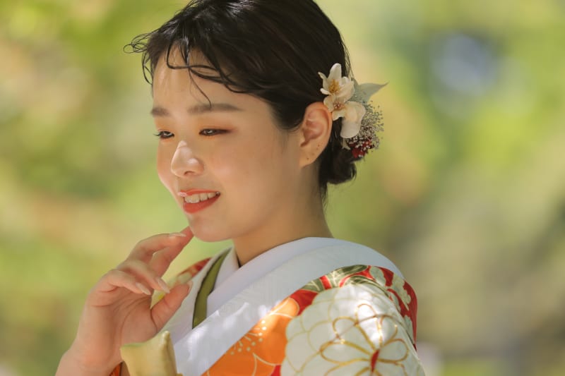メイクはカラーメイクで色打掛に合わせてやわらかな雰囲気を♡
